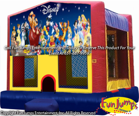Feel the magic of Disney as you jump in our World Of Disney Moonwalk. A proven favorite, this unit is great for any event. Ages = Kids To Adults Power Requirement = (1)110 Circuit (20 amps) Size = 15' L x 15' W x 14' H Rental Rate = $215.00
