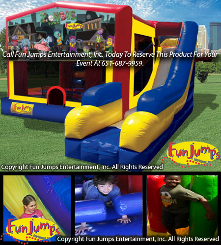 Come jump with Zombie Town characters this exciting 7 in 1 combo. Party goers will be entertained for hours by jumping, crawling, climbing, sliding and playing basketball.